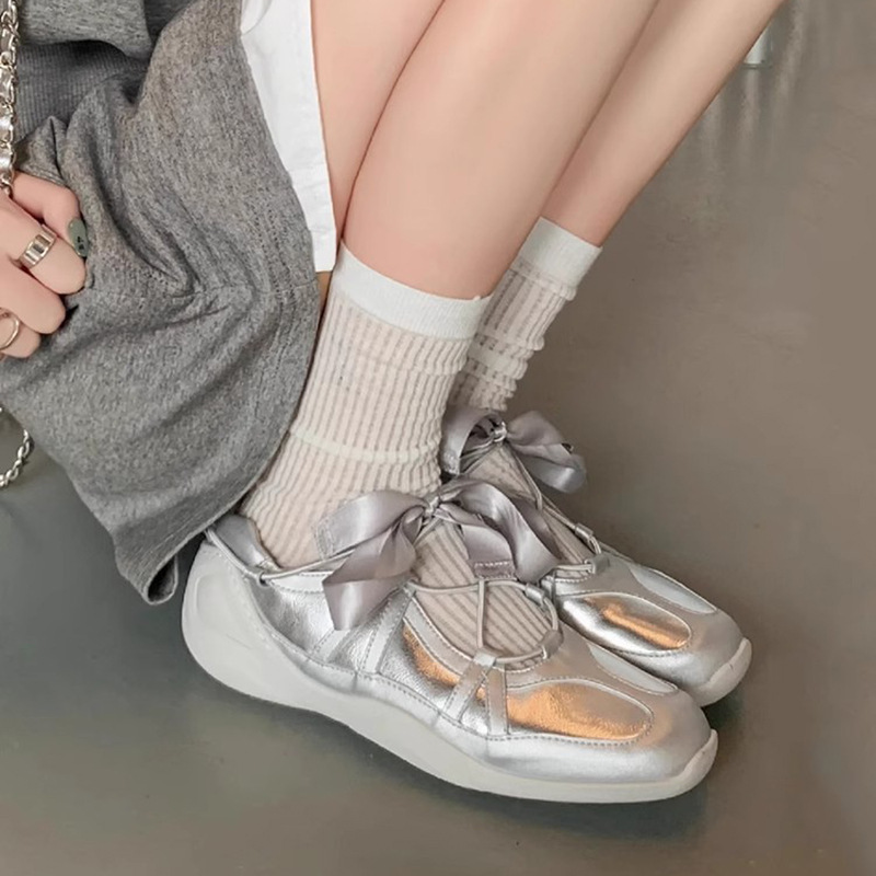 Ballet-style Soft Square-toe Mary Jane Shoes for Women, with Built-in Height Increase, Sweet Bow Ribbon, Casual Functional German Training Shoes, Women Shoes, Sneakers
